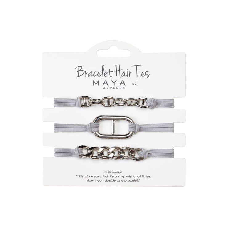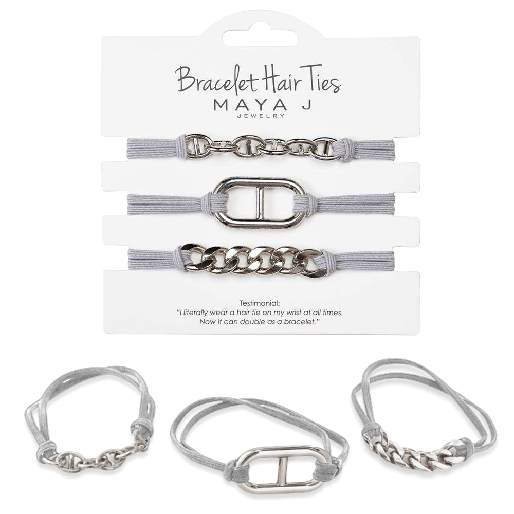 One of Oprah's favorite things 2022! Maya J Jewelry takes two things we love to wear on our wrists, hair ties and trendy bracelets, and combines them into one fashionable jewelry accessory - Bracelet Hair Ties! It’s a piece that everyone is sure to love and actually use, easily mixed and matched with other bracelets you already own. At an affordable price, it’s great for all ages, arriving on a beautiful card of three designs. You’ll soon want to wear one on your wrist at all times! Thoughtfully crafted with high-quality, plated brass and elastic, these sets are perfect for gifting on special occasions. Great for birthdays, stocking stuffers, white elephant gifts, hostess gifts and any winter season celebrations!