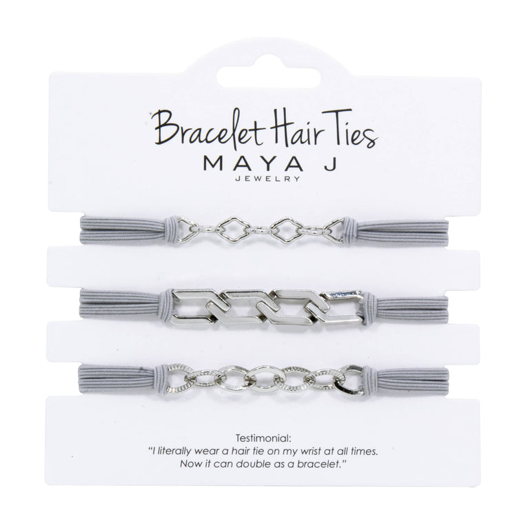 One of Oprah's favorite things 2022! Maya J Jewelry takes two things we love to wear on our wrists, hair ties and trendy bracelets, and combines them into one fashionable jewelry accessory - Bracelet Hair Ties! It’s a piece that everyone is sure to love and actually use, easily mixed and matched with other bracelets you already own. At an affordable price, it’s great for all ages, arriving on a beautiful card of three designs. You’ll soon want to wear one on your wrist at all times! Thoughtfully crafted with high-quality, plated brass and elastic, these sets are perfect for gifting on special occasions. Great for birthdays, stocking stuffers, white elephant gifts, hostess gifts and any winter season celebrations!