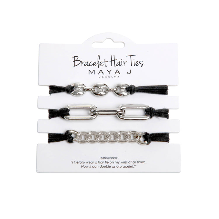 One of Oprah's favorite things 2022! Maya J Jewelry takes two things we love to wear on our wrists, hair ties and trendy bracelets, and combines them into one fashionable jewelry accessory - Bracelet Hair Ties! It’s a piece that everyone is sure to love and actually use, easily mixed and matched with other bracelets you already own. At an affordable price, it’s great for all ages, arriving on a beautiful card of three designs. You’ll soon want to wear one on your wrist at all times! Thoughtfully crafted with high-quality, plated brass and elastic, these sets are perfect for gifting on special occasions. Great for birthdays, stocking stuffers, white elephant gifts, hostess gifts and any winter season celebrations!