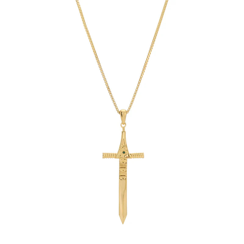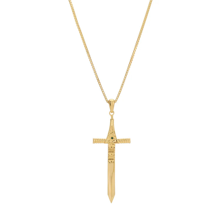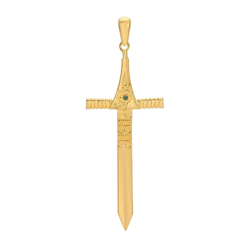 - 14k Gold over Brass Sword Pendant with Genuine Malachite Stone