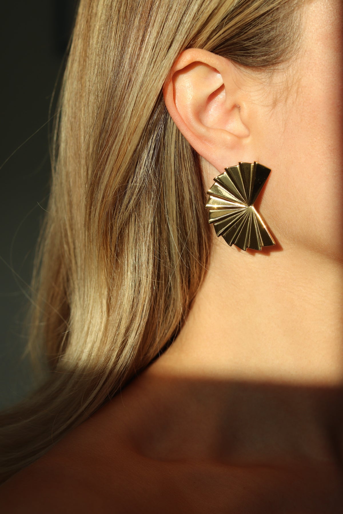 Your go-to statement earrings for day or night. These bold, fan-shaped earrings add just the right touch of shine to any outfit—effortless, eye-catching, and made to stand out.