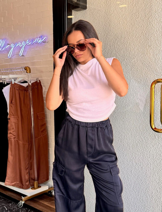Vendor:Cali DreamingWade Satin Trouser - Midnight Blue- Regular price