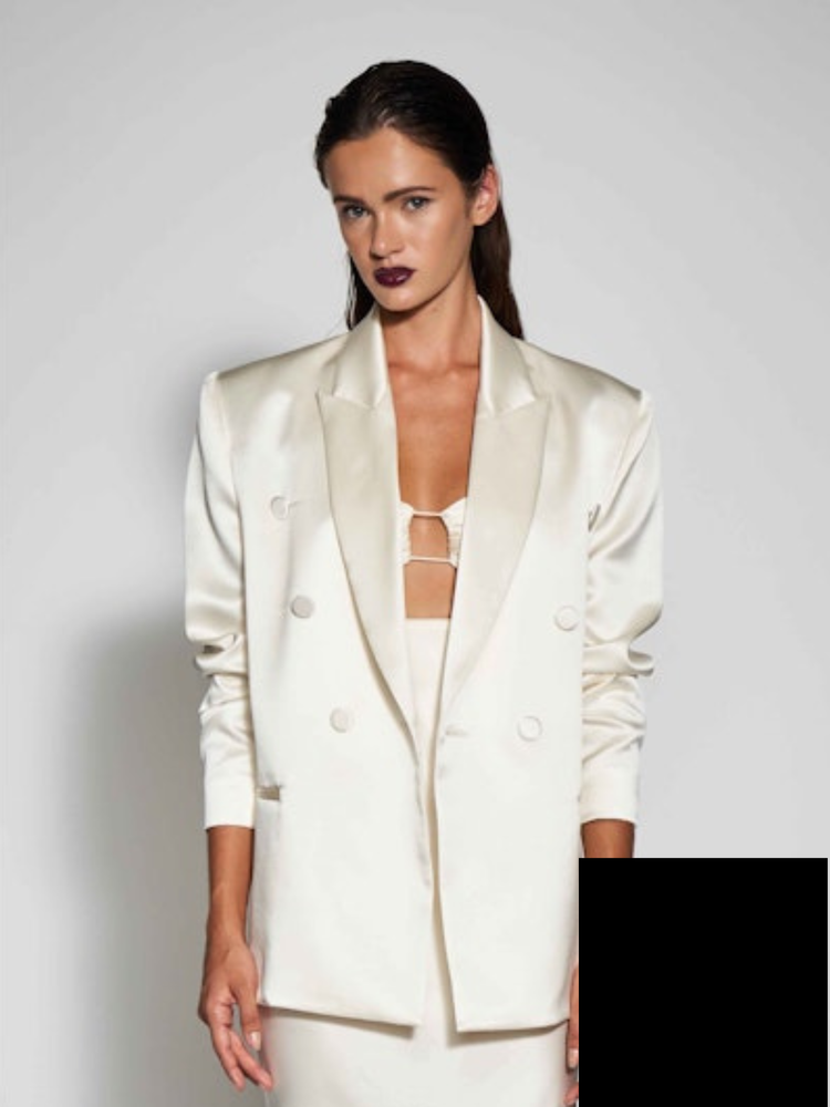 DOUBLE BREASTED SILK BLAZER - BLACK