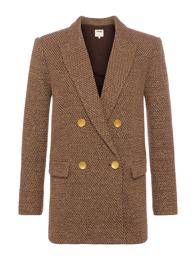 Fresh, polished, and endlessly wearable. The Riva blazer features a modern oversized fit crafted from a luxurious knit infused with lurex for a subtle sparkle. Now in a warm neutral. More images coming soon.