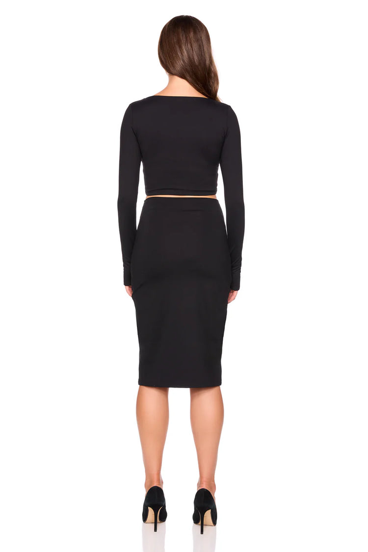 The perfect pencil skirt is more than just an office essential. Susana Monaco's high-waisted skirt is a wardrobe cornerstone designed to sculpt your figure and boost your confidence for any occasion. make a statement with a gold heel and matching bag to give this skirt the full effect.