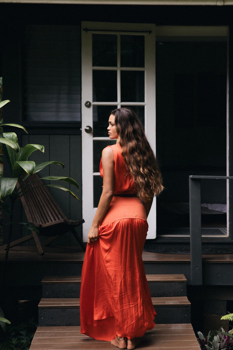 Meet the Blake Maxi Skirt - The ultra flattering waistband is cut from Stillwater LA's buttery soft signature tencel cotton spandex and the skirt is cut from their signature viscose satin silky...These two fabrics just work so well together. Pair back to the baja top for the perfect summer set