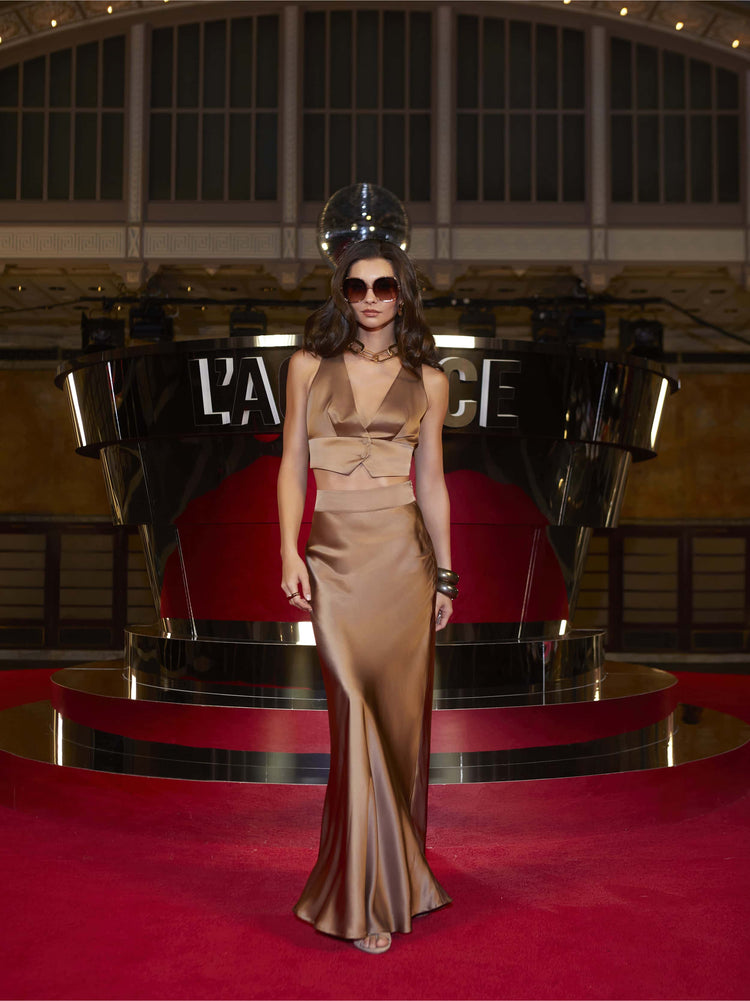 L'AGENCE's bestselling silk maxi skirt is back in a subtle white feather print. Dressed up or down, the Ryker is a must-have for sublime, minimalist sophistication.