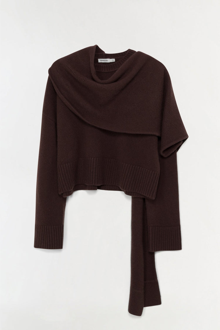 Elson Wool Cashmere Scarf Sweater - Chocolate