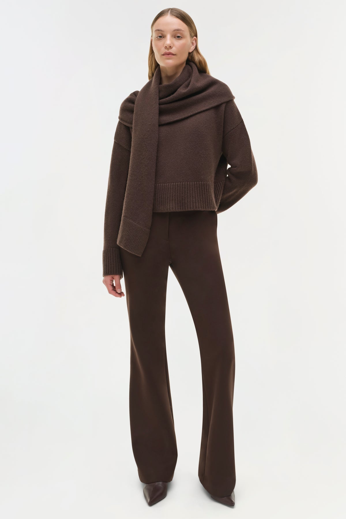 The Elson Wool Cashmere Scarf Sweater in Chocolate