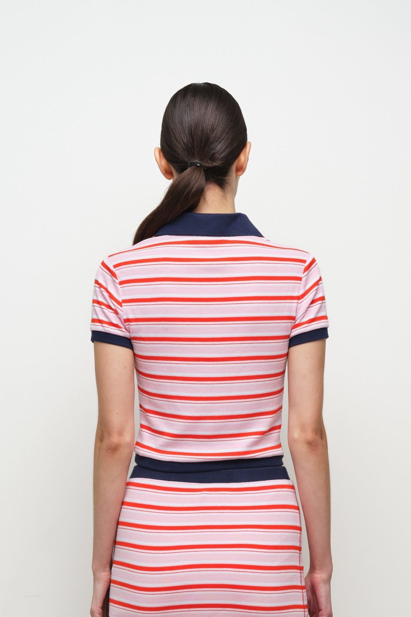 The SIMKHAI Marnie Knit Polo in Tulip Stripe blends modern polish with effortless comfort, featuring a sculpting rib knit that flatters the body while maintaining a soft, breathable feel. Designed for versatile styling, this elevated knit top pairs refined tailoring with the relaxed ease of a spring-ready polo.