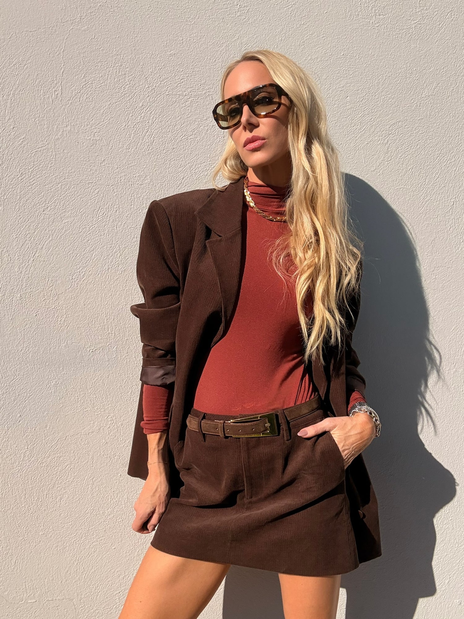 - Turtleneck bodysuit with thumbhole detail at wrist