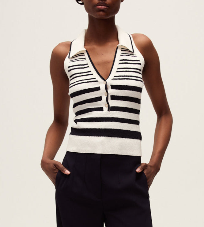 The Meera Knit Tank by Veronica Beard pictured here in Off White/Navy. More info coming soon.