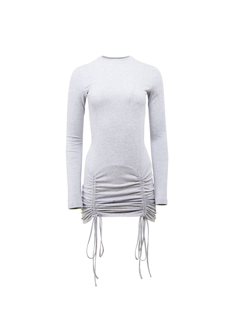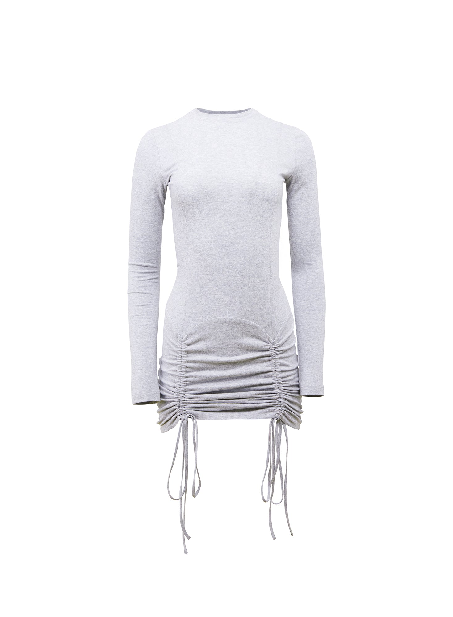 Fleur Du Mal's Riley Dress, in comfortable cotton jersey with long sleeves. Ruched princess seams at skirt allow for adjustable length. Take it out layered over your favorite Essentials panty.