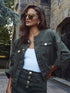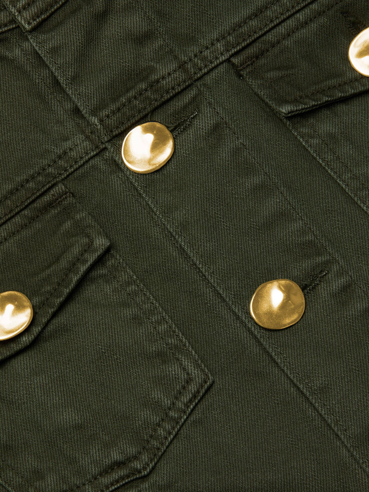 Utility-inspired with a feminine fit, the Anouk is a collarless denim jacket you'll reach for again and again. The subtle bell sleeves can be worn cinched by the roll tab or loose for a bolder silhouette. Matte gold buttons add a touch of modern elegance. Wear it with the coordinating Solene skirt for a cohesive look.