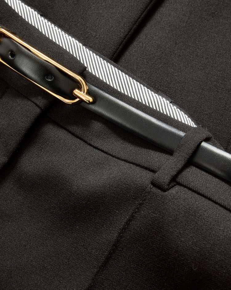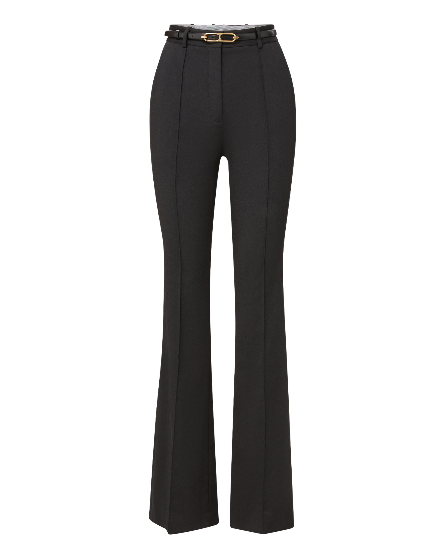 Veronica Beard's leg-lengthening pant. Crafted from an Italian stretch-wool blend, the high-waisted Gracie pant is defined by a slim leg that falls to a slight flare above the knee and comes with a removable skinny belt for easy styling. For a chic, polished look, pair these black belted pants with a silky blouse or slim sweater and finish with heels.