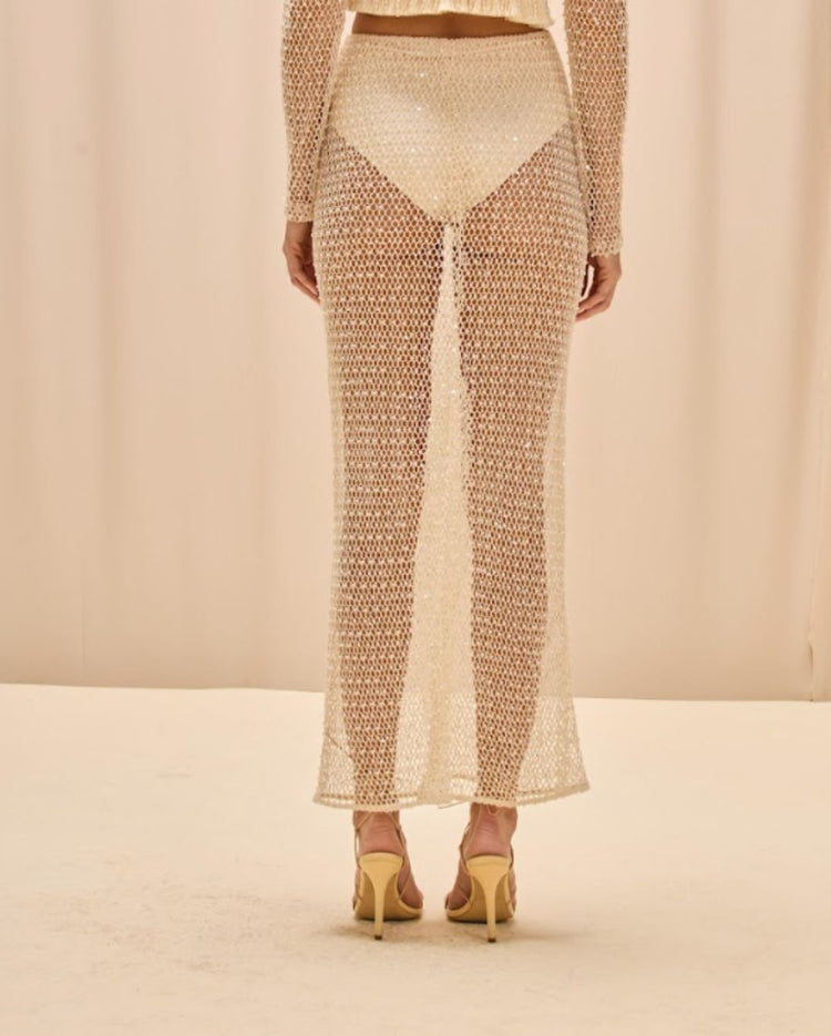 The Crochet Bloom Skirt is perfect for creating a look that embodies the glamorous spirit of PatBO beachwear. Crafted from a special sheer pearl-embroidered mesh, it features an inner lycra hot pant — the perfect piece to take you from the beach to the party.