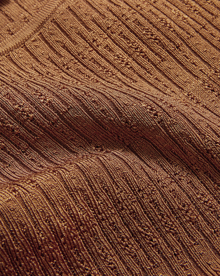 A must-have for your summer packing list, the Sandra tank top is designed to flatter—and stay wrinkle free. The body-skimming knit in sepia brown is ribbed for flattering texture and features a generous scoop neck. Tuck this sleeveless sweater top into jeans, top it with a button-down, layer it under a blazer—the options are endless.