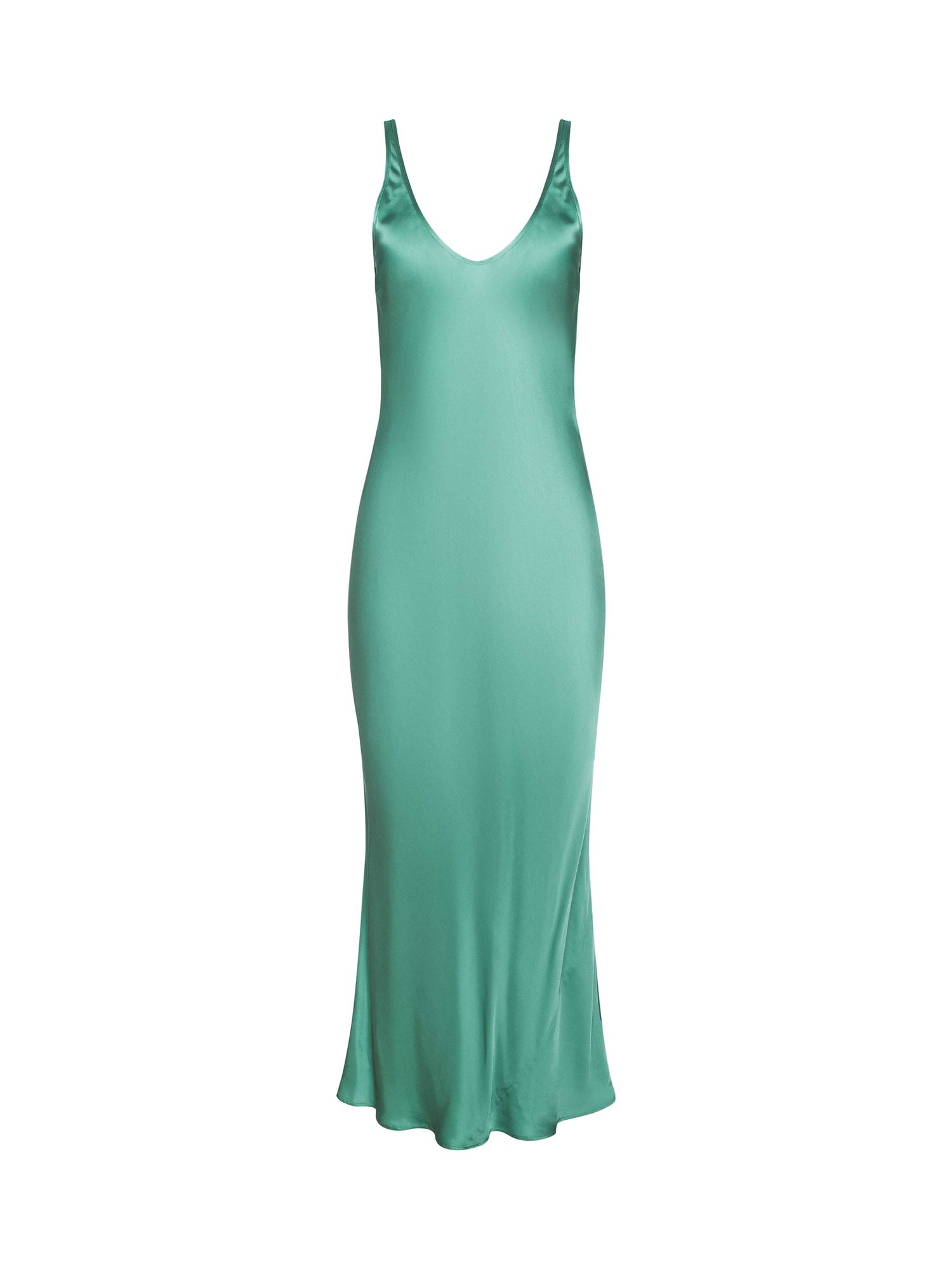 Minimal, elegant, and flattering, the Akiya tank dress is a day-to-night essential. Lustrous, bias-cut satin drapes beautifully over the figure. Now back in a soft malachite green.