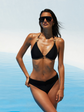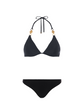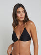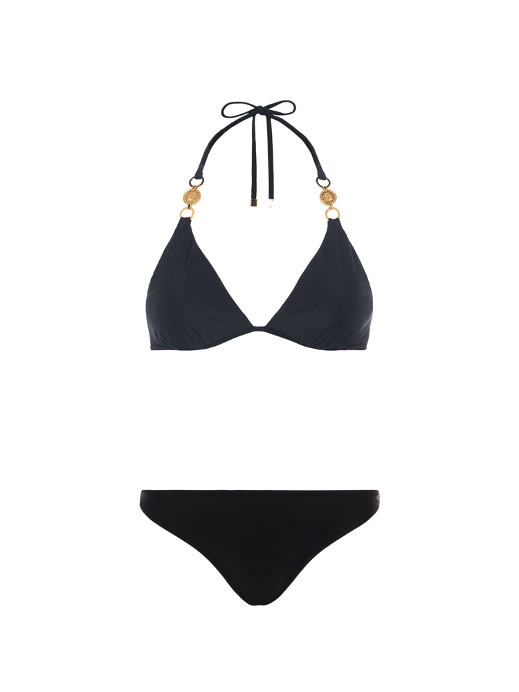 L'AGENCE's classic black triangle bikini top, now updated with gold coin hardware for a hint of subtle glamour.