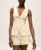 The essential tailored vest. Crafted from a soft and breathable stretch-cotton blend, Avalina is designed with flattering seams to accentuate the waistline and features a deep V-neckline, an angled split hem, and our signature crest buttons. Pair this ecru vest top with the coordinating Devina Short for a sleek summer set.