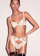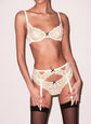 Fleur du Mal's Bianca Lace Bra, featuring a new silhouette with an ultra flattering, hybrid demi/balconette shape. Comfortable stretch lace cups with bow detail and shirred picot shoulder straps. Complete this romantic set with the matching Bianca Lace Thong.
