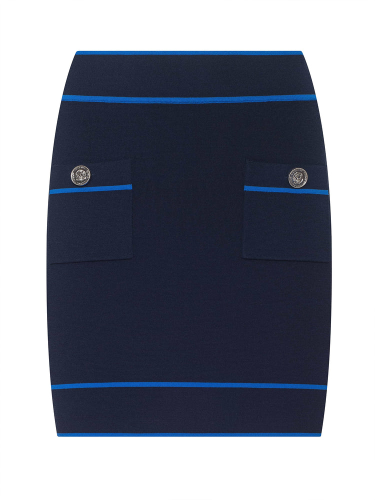 The Cecilia blends refined simplicity with eye-catching contrast piping. Crafted in a smooth stretch knit for a clean, body-skimming shape, this mini is both effortless and polished. Pair with the matching cardigan or a silk blouse for an effortlessly elevated ensemble. Swap with an oversized tee for your off-duty moments.