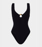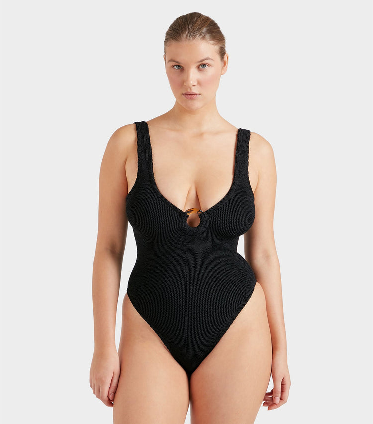 Modern swimsuit, timeless appeal. With tortoiseshell hoop detailing and a deep-v neckline, Celine has understated glamour down.