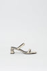 Crafted in textured leather, these block heels feature a sculpted silhouette with slender double straps and a squared toe. The mid-height heel offers balance and ease. A polished essential, refined through proportion and line.