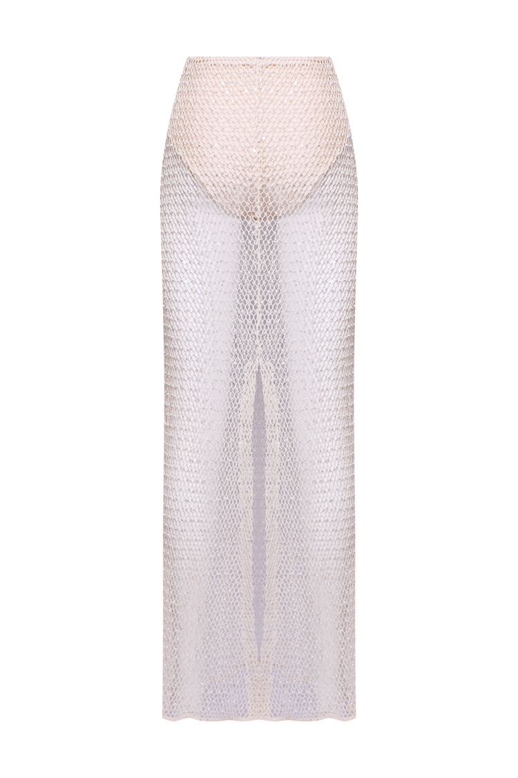 The Crochet Bloom Skirt is perfect for creating a look that embodies the glamorous spirit of PatBO beachwear. Crafted from a special sheer pearl-embroidered mesh, it features an inner lycra hot pant — the perfect piece to take you from the beach to the party.