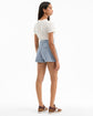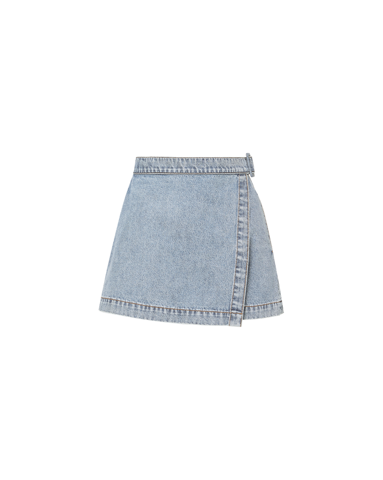 Skirt from the front, shorts from the back. Made from premium non-stretch Japanese denim, the Diaz skort features a wrap-style A-line mini skirt—secured with a matching side buckle—and welt pockets in the back. It offers perfect comfort, coverage, and style. Perfect for weekends and wanderlust, this chic must-have is easily dressed up or down.
