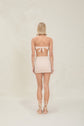 The Eve is a mini skirt with bead and cut-out detail at side waist.