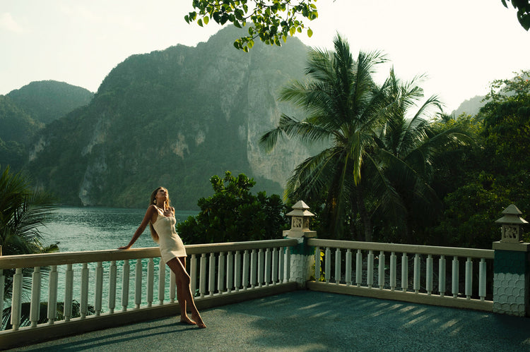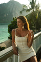 Model wearing a size Small. Height 5’11”, Bust 32B, Waist 24”, Hips 35".