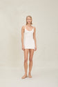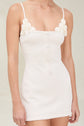 The Hayes is a mini dress with button detailing on the center front and hand-beaded flower detailing.