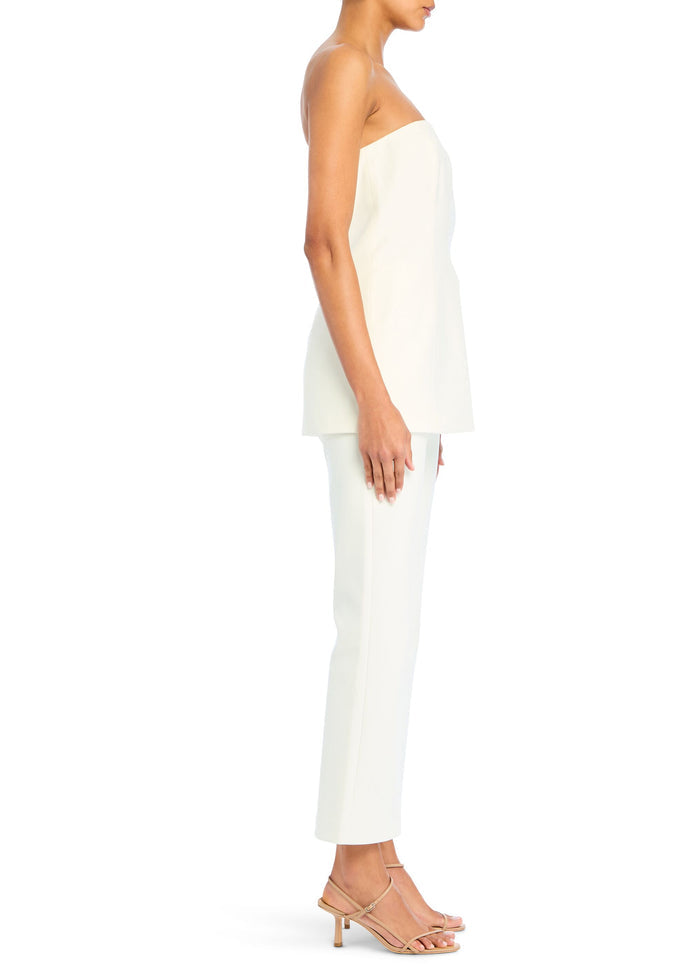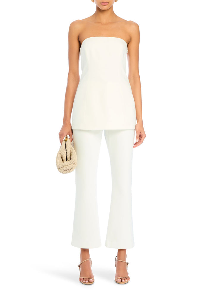 Fitted, strapless long top. Pair with the Celeste Skirt to complete the look. Shown here in Eggshell.