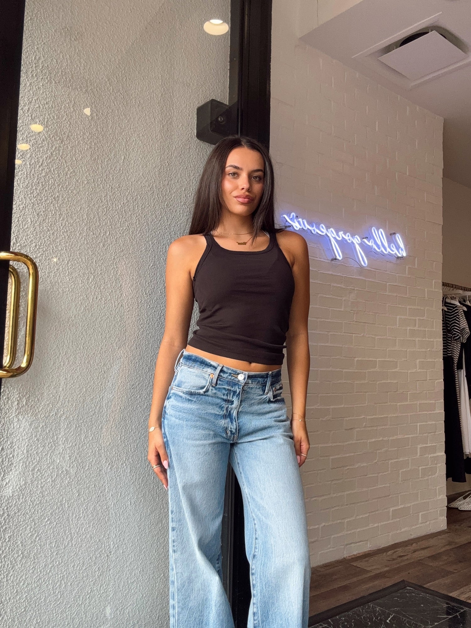 Wrap yourself in the understated luxury of the Jamie Rib Tank. Meticulously crafted with an ultra-soft essential feel that is as divine as it looks. With a sculpting high neckline, a second-skin fit, and a modern racerback silhouette, it’s the perfect fusion of effortless sophistication and everyday wearability. Dress it up, layer it, or wear it solo—this is the piece your wardrobe will revolve around.