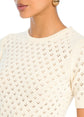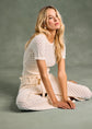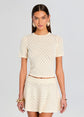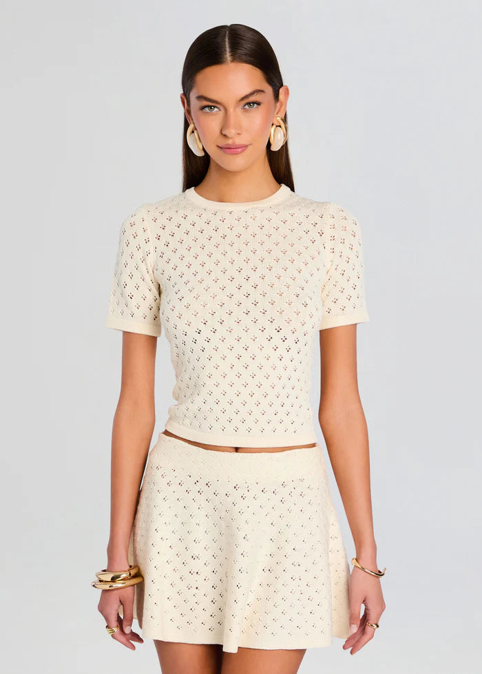 Pointelle knit fitted t-shirt. Pair with the Seren Knit Skirt to complete the look. Shown here in Eggshell.