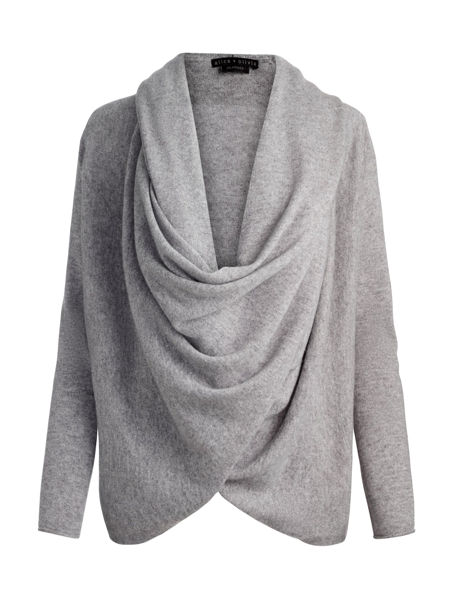 Alice + Olivia's cult-favorite Jules Pullover is back by popular demand! Spun from feather-soft, 100% pure cashmere, this gorgeous grey sweater drapes fluidly to flatter every figure. Functional buttons at the neck let you style it in myriad ways-off the shoulder, as a cardigan, draped in front-you can’t go wrong. The curved hem skims the hips for a relaxed yet refined shape, making it effortless to half-tuck into denim or layer over slip skirts. Luxurious, timeless, and versatile-this is a forever favorite.