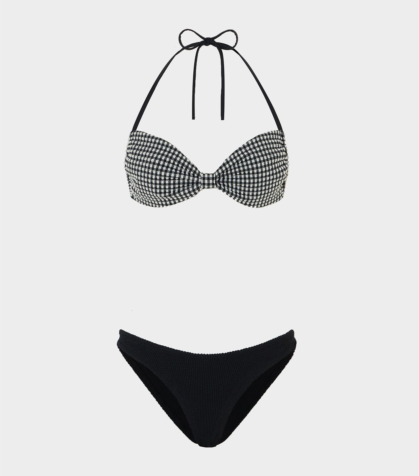 The Kacey bikini features an adjustable halter tie neck for a customised fit. The bottoms are crafted from Hunza G's Original Crinkle™ fabrication with a dipped front silhouette with a skimpy fit.