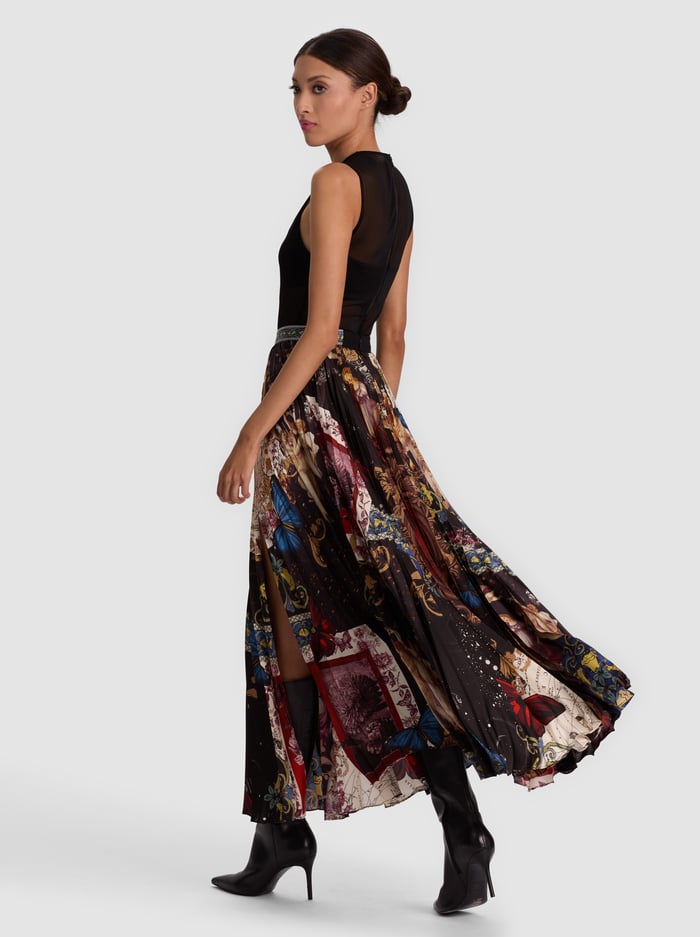 Alice + Olivia's Katz maxi skirt is a signature A+O piece, made to be worn with everything from bodysuits to sweaters, tanks, and more. We love Alice + Olivia's latest iteration in a dreamy print with a wide waistband, high rise, front slit and easy-to-wear silhouette. Just sub for your favorite jeans.