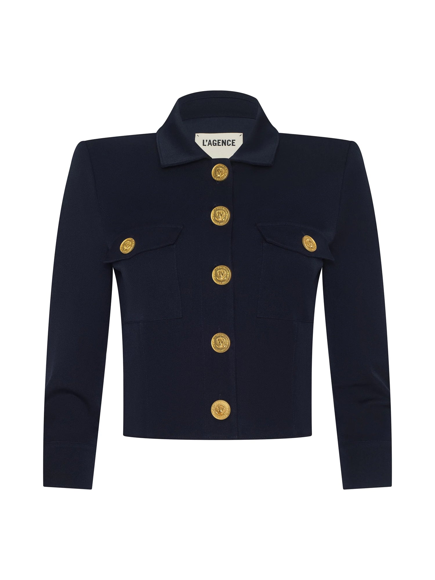 L'AGENCE's bestselling three-quarter sleeve jacket, now in midnight navy. A strong shoulder and tapered silhouette create flattering definition. Wear it as a top or second layer.