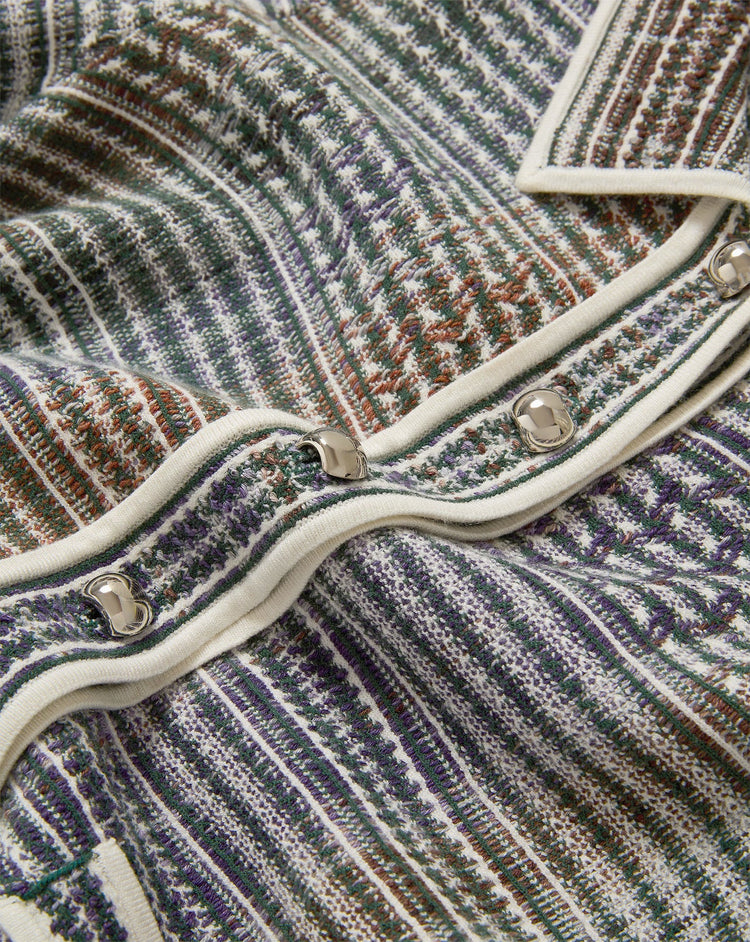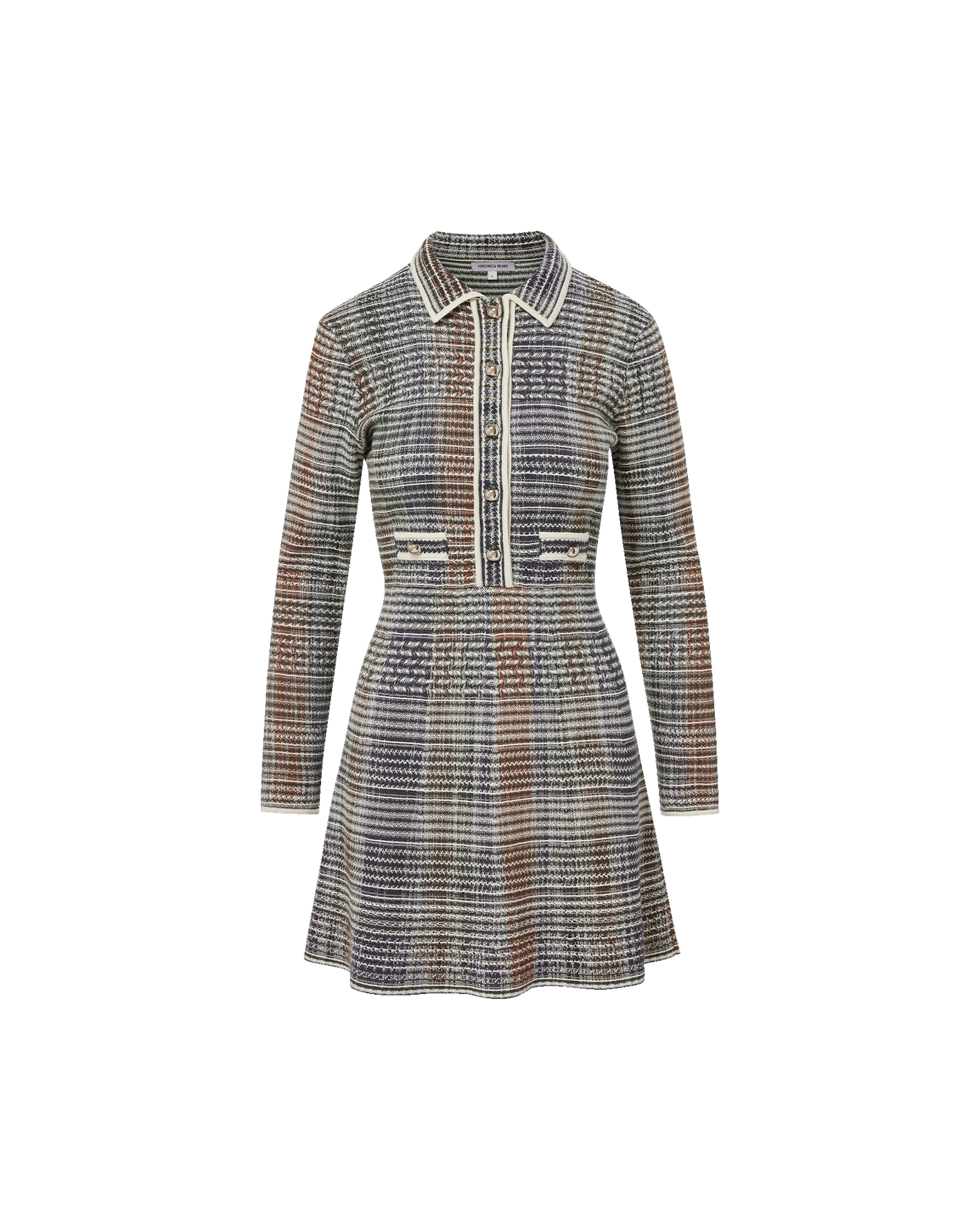The ultimate 9-to-9 dress, the Lauper balances office-ready polish with cocktail-hour cool. Crafted from a multicolored tweed-like knit, this mini dress combines structure with subtle stretch. Featuring a trim collar, half-placket of silver buttons, faux front pockets, and elongated cuffs, it’s a one-and-done style for instant polish. Pair with heels, flats, or sneakers for versatile dressing.