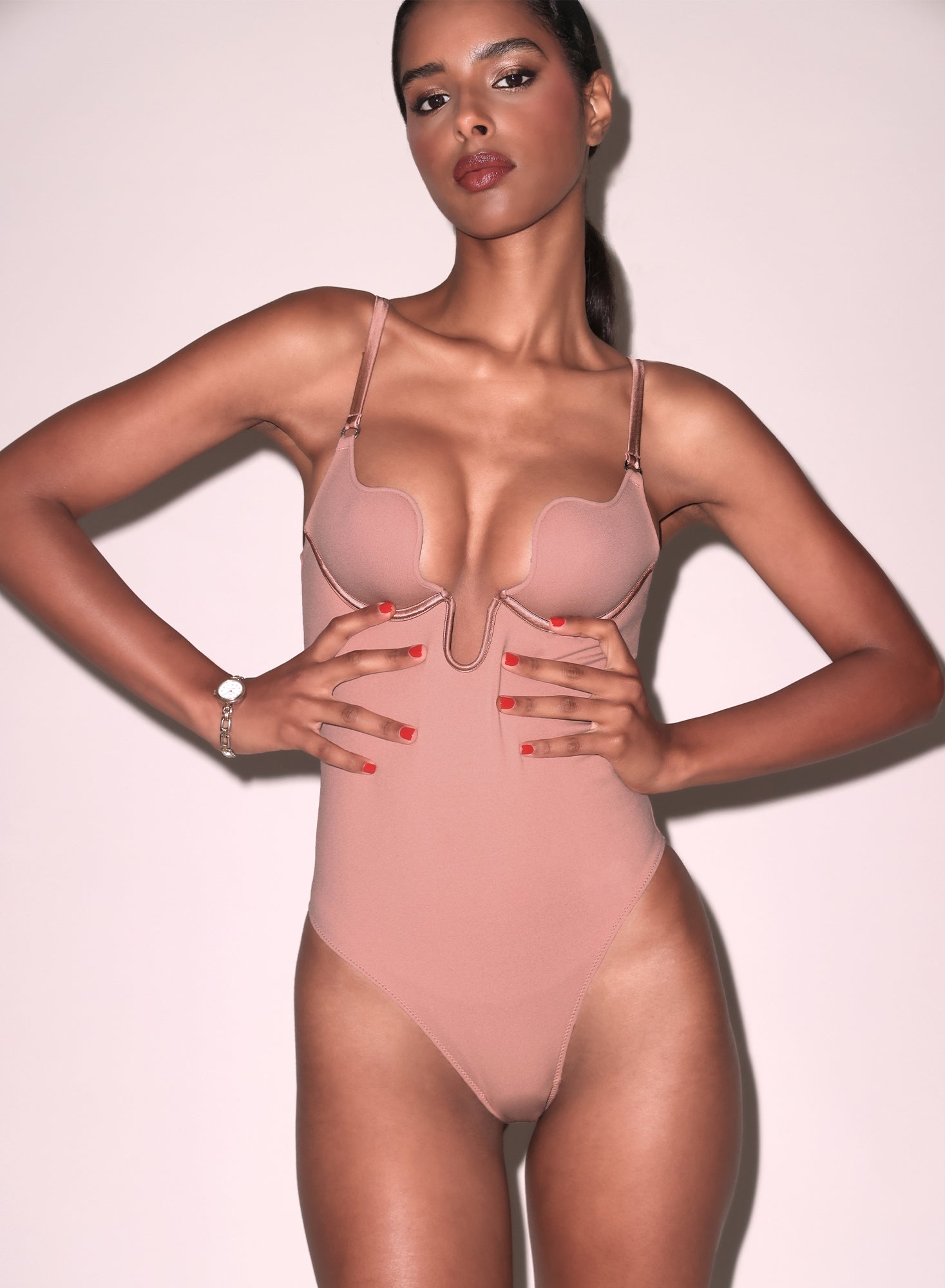 Le Stretch Micro Seduce U-Plunge Bodysuit - Tan