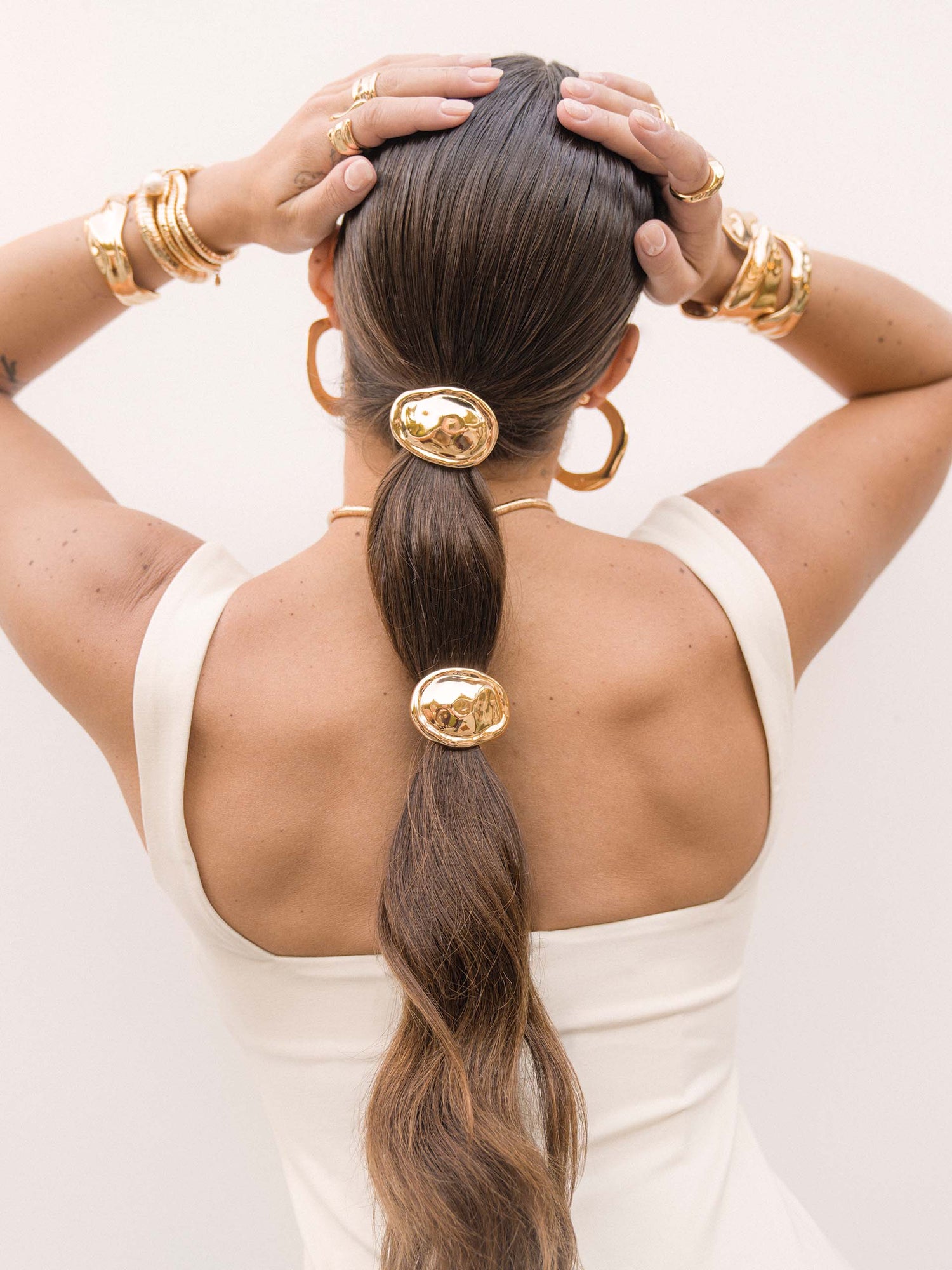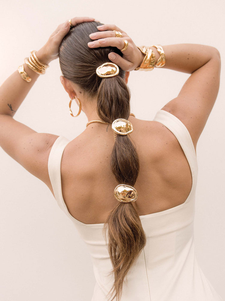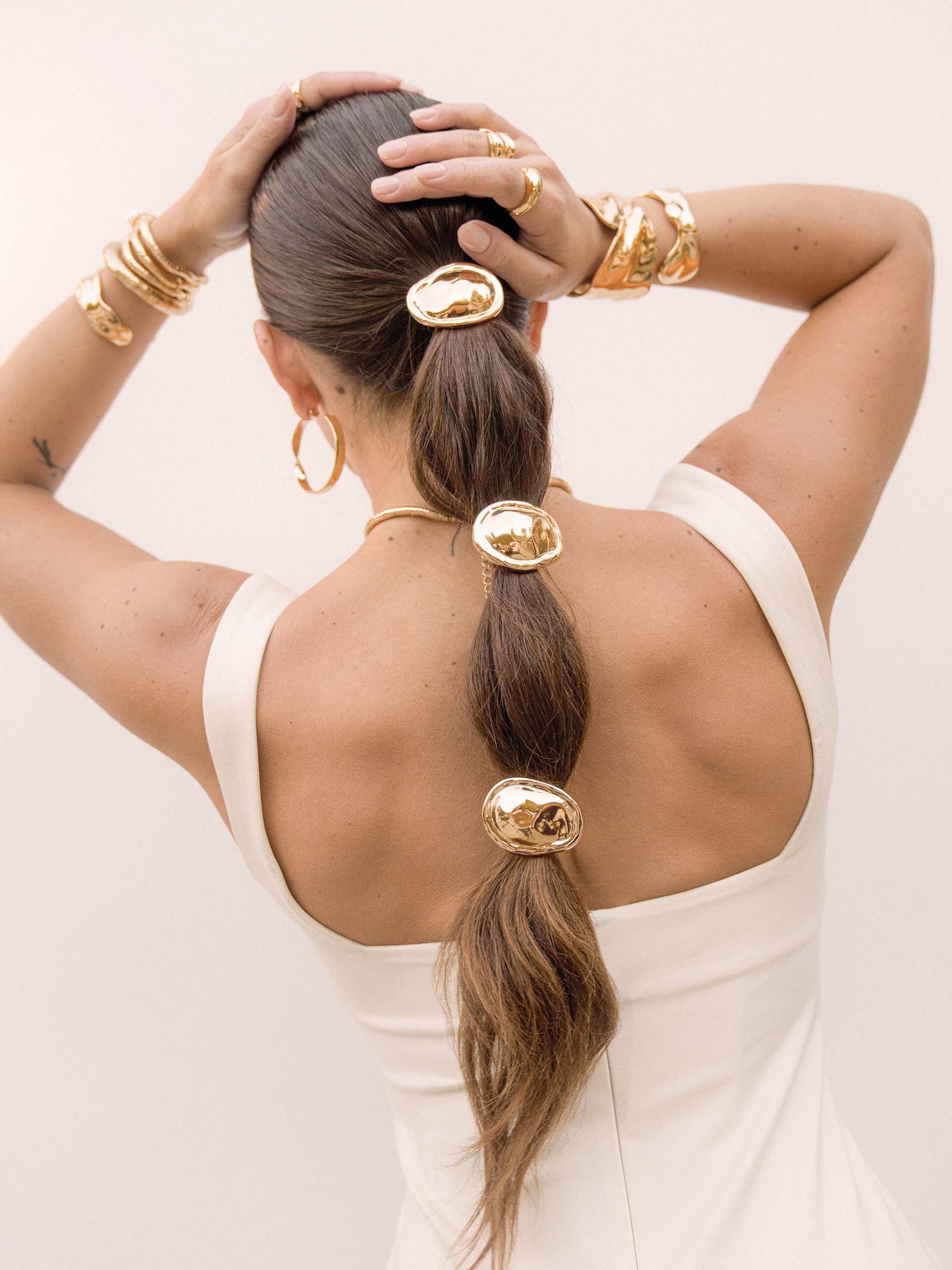 Materials Gold Tone, Zinc, Elastic Length 1.57" Width 2.08"