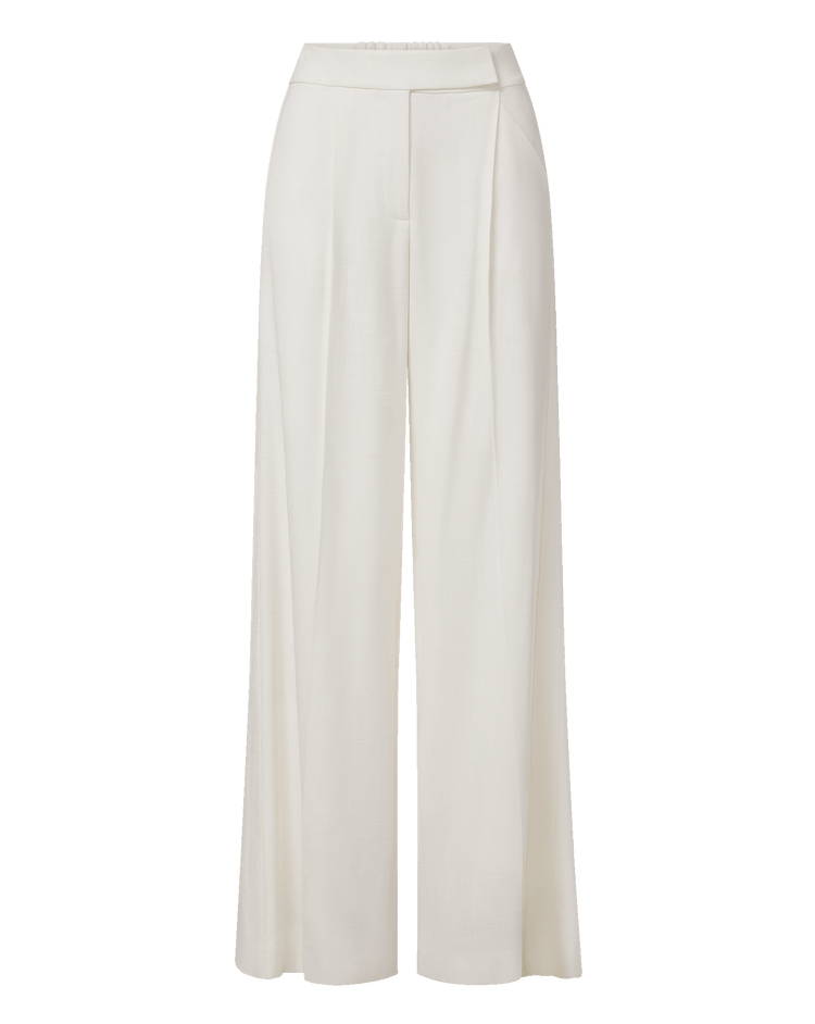 A relaxed, roomy pant that still feels polished. Crafted from a premium stretch-tailoring blend in off-white, the high-waisted Marbeau is defined by a wide-leg silhouette with front pleats and fluid drape. It features an elasticated back band to ensure a comfortable fit, while diagonal side slip pockets and back welt pockets complete the look. Dress it down with a simple tee or sweater—or pair with a matching Battista dickey jacket for an effortless suit.
