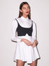Suit up in Fleur Du Mal's Maxwell Cropped Vest. Tailored fit with a power mesh back and back belt detail with silver rings. Cropped length with front button closure. Take it out layered over the Zoe Dress.