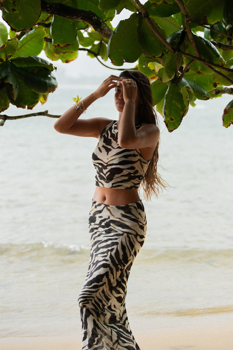 This is a sheer power mesh maxi skirt with fold down waist band and back slit. This one can be worn high waisted or low on your hips. Pair with your favorite tee or the new lengths tank for easy cool girl style. The skirt is lined to help with the sheerness of the mesh fabric.