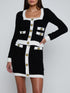 Designed in a plush knit with clean ivory trims, the Monette features a sculpted square neckline and pocket detailing. Finished with embossed gold buttons, it offers tailored sensibility to a soft, easy layer. Style it solo as a top or layer it open over denim and tees.
