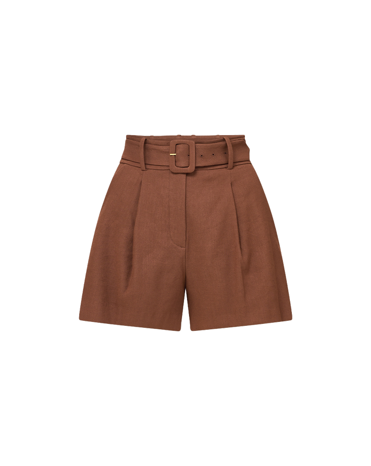 The tailored short you’ll live in all season long. Expertly tailored from Italian stretch linen, the off-white Piper sits high on the waist and falls with a beautiful drape to a thigh-grazing length. With a waist-defining belt, this A-line silhouette is designed to flatter the figure, while front pleats add a sense of ease. Side and back pockets complete the look. Wear with an elongated linen blazer for a chic short-suit moment.