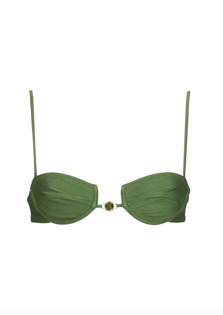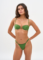 The PRIMA Bikini set is a bold and sophisticated design with luxe gold ring accents for a touch of elegance. The PRIMA Top features a structured, underwire-style fit with thin adjustable straps, offering a sleek and supportive look. The PRIMA Bottoms are a minimal, high-cut thong with delicate side rings, perfect for enhancing curves and elongating the legs..
