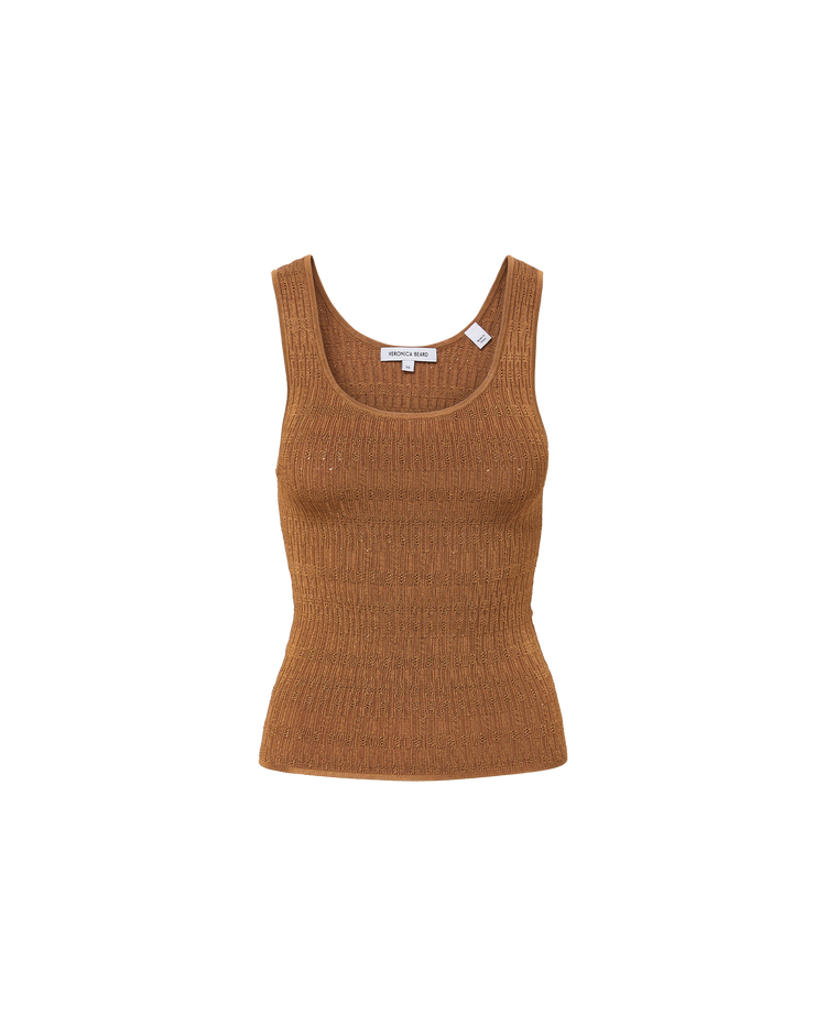 A must-have for your summer packing list, the Sandra tank top is designed to flatter—and stay wrinkle free. The body-skimming knit in sepia brown is ribbed for flattering texture and features a generous scoop neck. Tuck this sleeveless sweater top into jeans, top it with a button-down, layer it under a blazer—the options are endless.